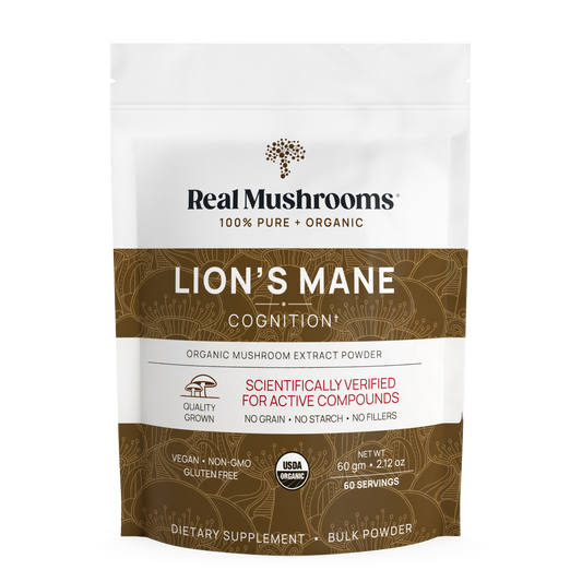 Vendor:Real Mushrooms(42)Regular price $34.95 USDRegular priceUnit price perSale price $34.95 USDThe lion's mane mushroom (Hericium erinaceus) naturally contains beta-glucans, a type of polysaccharide found in its cell walls. These beta-glucans are known for their immune-modulating properties, which may help regulate the body's immune response. In addition to beta-glucans, lion's mane also contains unique bioactive compounds which are particularly associated with supporting nerve regeneration and brain health. When considering Lion's Mane for pets, here’s how it may help: Immune Suppor...