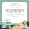 • Immune and Energy Support: Turkey Tail mushrooms help strengthen your pet’s immune system, and Cordyceps mushrooms boost your pet’s energy levels, stamina, and respiratory health during cancer recovery.