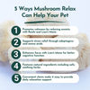 Help your dog or cat relax naturally with Mushroom Relax Pet Chews from Real Mushroom, expertly formulated to calm anxious pets. These chews feature a blend of Lion’s Mane and Reishi mushrooms, two powerful adaptogens that work together to support your pet's stress response and nervous system. Whether it’s thunderstorms, fireworks, or travel anxiety, Mushroom Relax Chews provide soothing comfort to your pet.