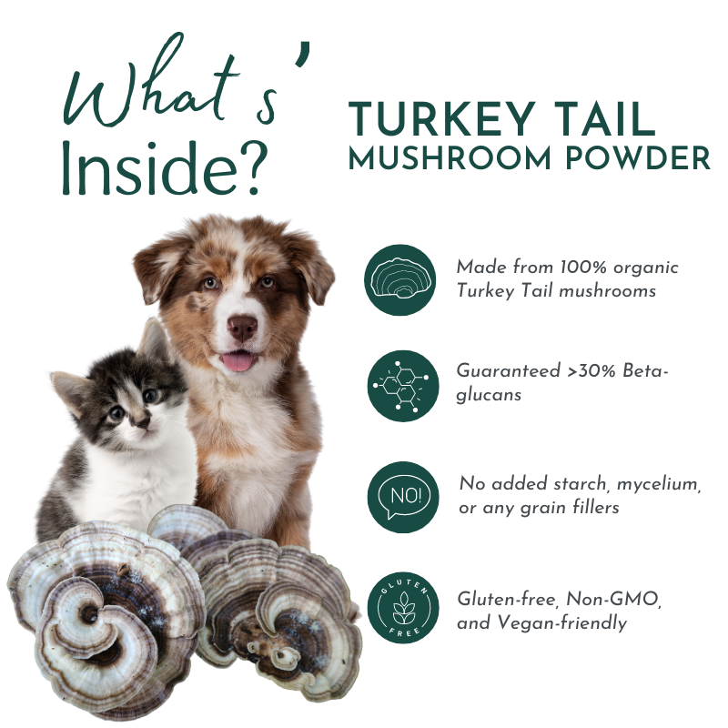 Adding Turkey Tail Mushroom Powder to a pet's care plan is a simple way to provide natural support for health and vitality.