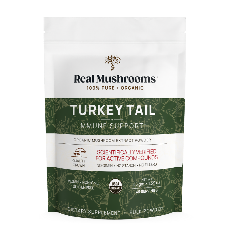 Real Mushrooms Organic Turkey Tail Mushroom Powder for Pets is a high-quality, USDA Organic Certified supplement made from 100% organic Turkey Tail mushrooms (Trametes versicolor). This natural powder may help maintain normal immune function and support digestive health, making it a beneficial addition to a pet's daily routine.